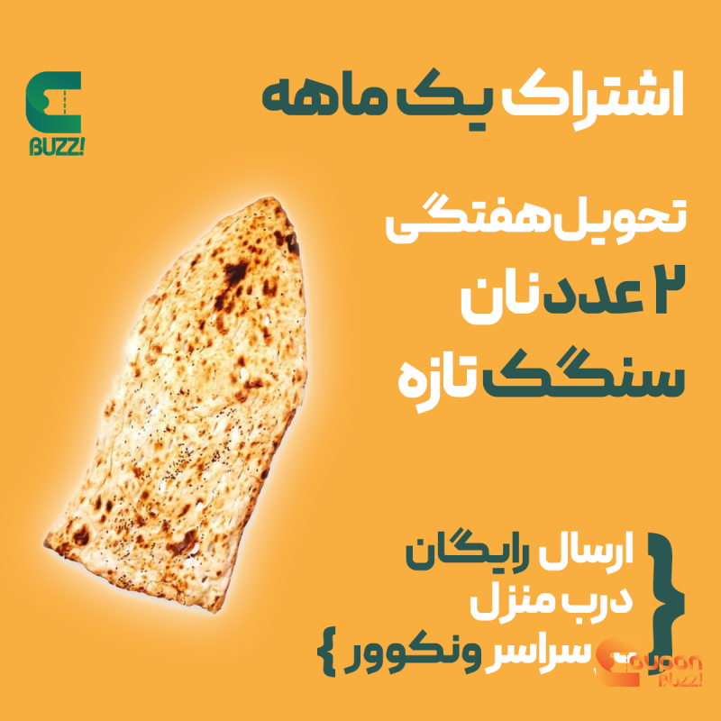 با این اشتراک  ۱ ماهه، هر هفته دو عدد نان سنگک تازه و خوش‌عطر مستقیماً درب منزل شما تحویل داده می‌شود.