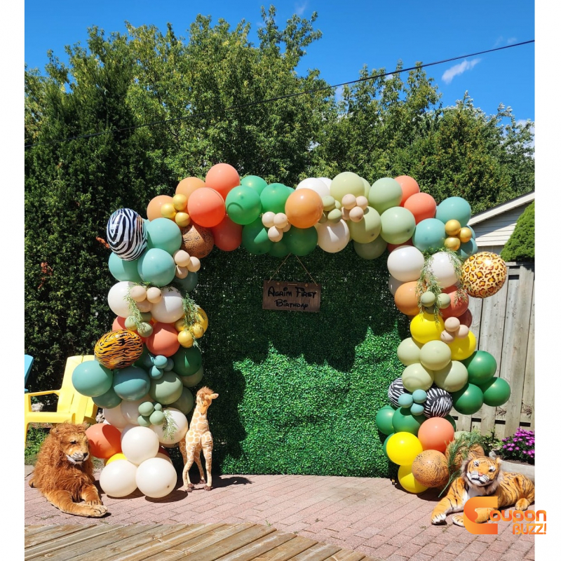 Green wall backdrop with Balloon decorations with any color theme.