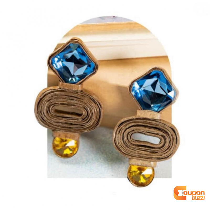 Combination of papier-mâché and kraft paper and yellow and blue gems