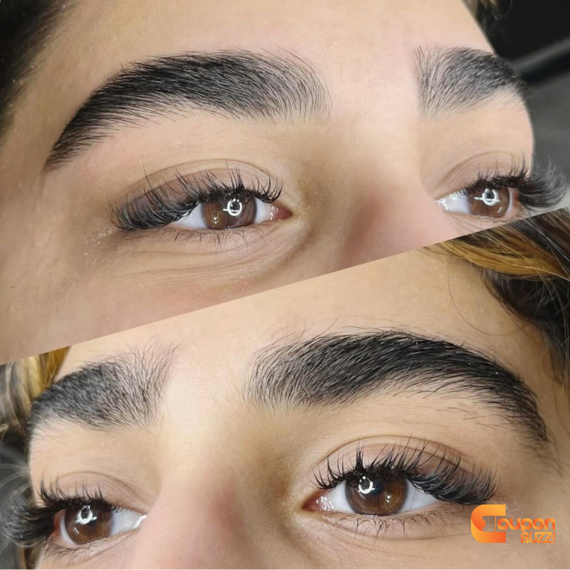 European-style eyebrow design and shave. Eyebrow shaving with thread and scissors technique + professional design with special pencils.