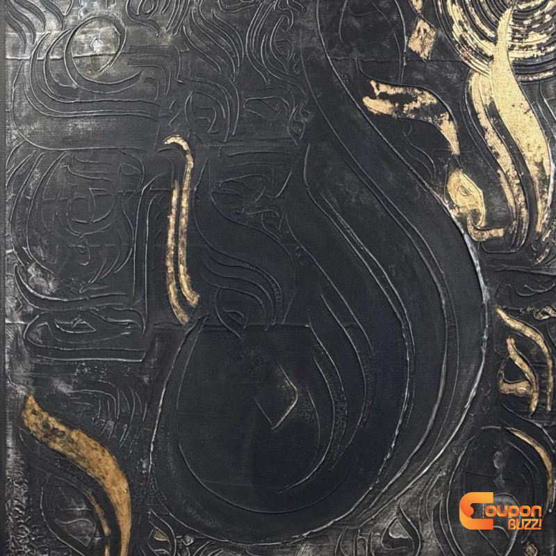 Farsi improvisation painting with 24/24 dip canvas, with texture and ink in the form of patina.