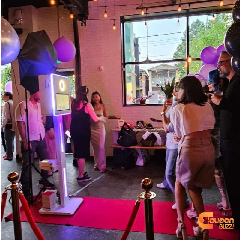 A photobooth is a fun photo station where guests can take memorable pictures and instantly print them. This package includes two hours of classic photobooth with unlimited photos and prints, red carpet, and a variety of props.