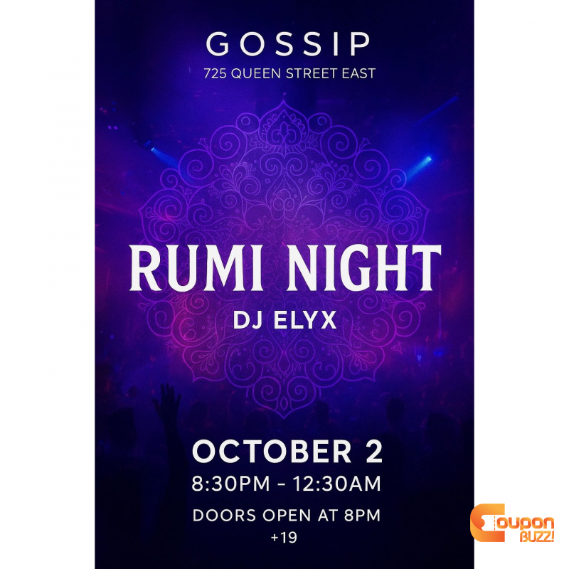 Step into the exuberant world of RUMI NIGHT , a night full of mystical rhythms, electronic music, and pure energy that gives you a unique blend of Afro House, Deep House, and Middle Eastern vibes in the heart of Toronto.