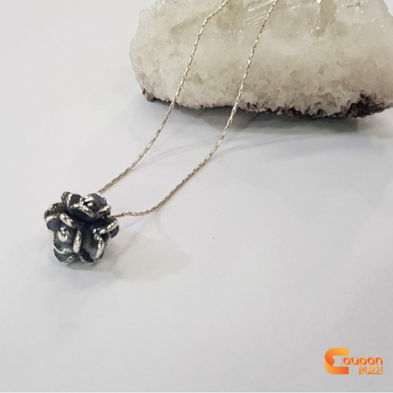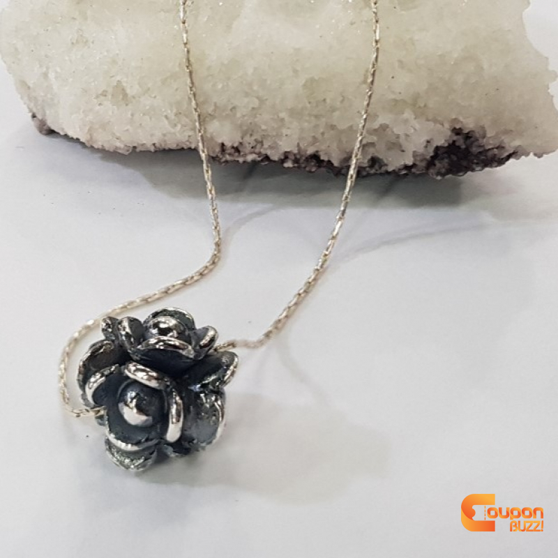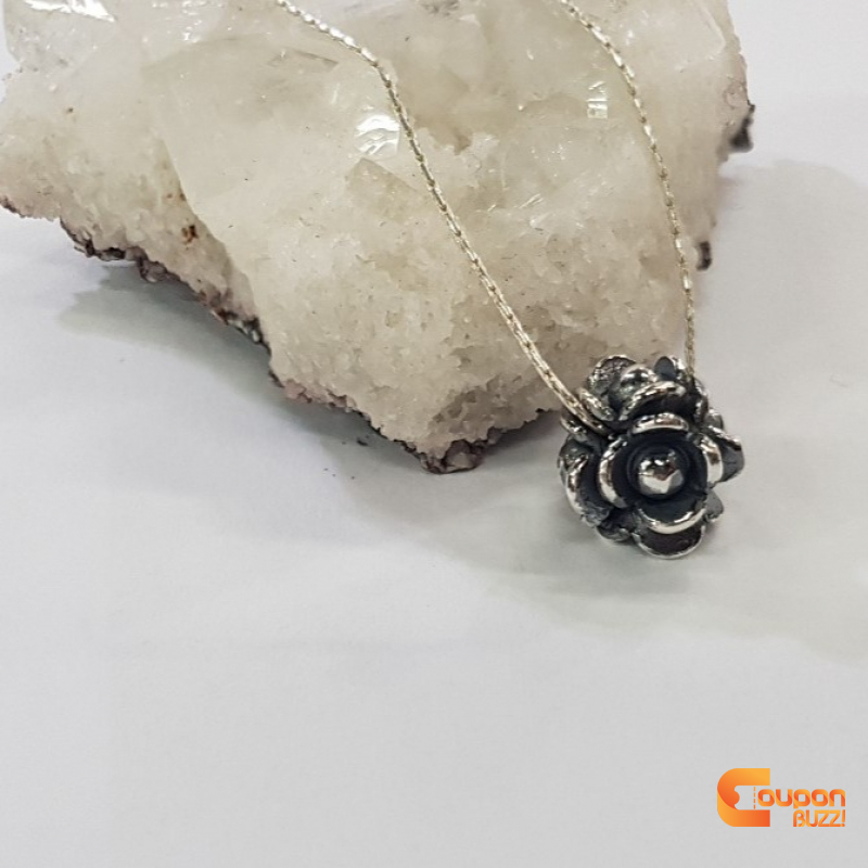 This exquisite oxidized floral silver pendant_t is a true work of art, showcasing intricate craftsmanship. With its delicate floral design, it exudes timeless elegance and charm. Measuring *_1.2 x 1.2 cm*, the pendant strikes the perfect balance between subtlety and statement. The oxidized finish adds depth and character, giving it a vintage feel, while the chain adds a graceful touch to the overall piece. Handcrafted with care, each detail is meticulously designed, making it a unique and one-of-a-kind accessory. Perfect for those who appreciate the beauty of handmade jewelry, this pendant combines sophistication and originality in a truly special way.